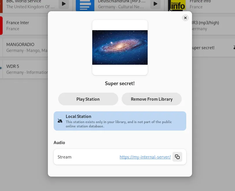 以前,你必须依赖 radio-browser.info 库中的可用电台。
