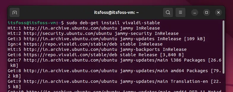 现在,如果你在系统上配置好了 deb-get 工具(配置指南在本文末尾),你就可以使用以下命令轻松地安装 Vivaldi: