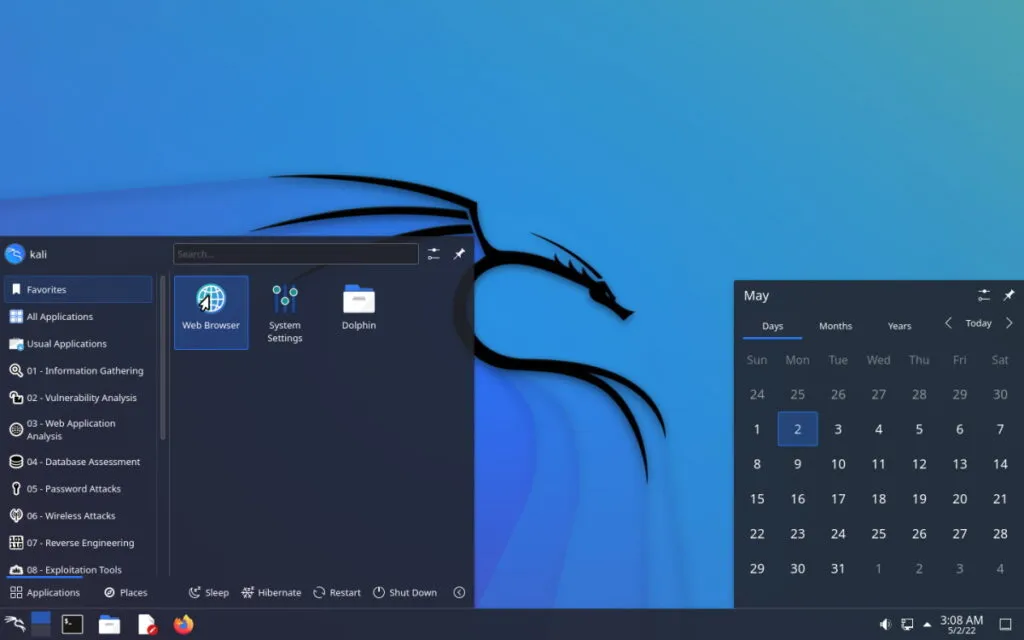 对于 KDE 粉丝,Kali Linux 2022.2 也带来了新的 KDE Plasma 5.24 LTS 桌面环境。