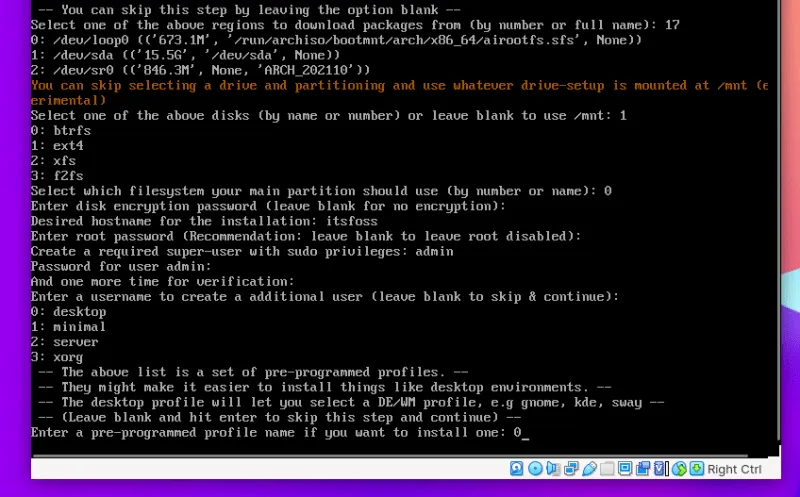 尽管浏览这些选项需要一些时间,但 Arch Linux 上新的引导式安装程序可以节省大量时间使必填项配置正确。