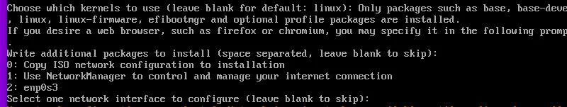 安装程序会提示你输入想安装的软件包。在这里,我们没有任何特殊要求,因此我们将其留空并按回车键跳过。