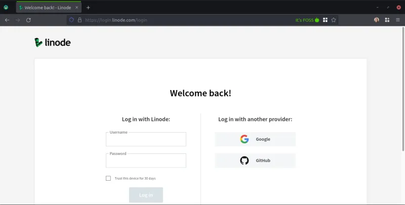我们将在一个普通的浏览器选项卡中访问 Linode 管理网站,我已经在其中登录: