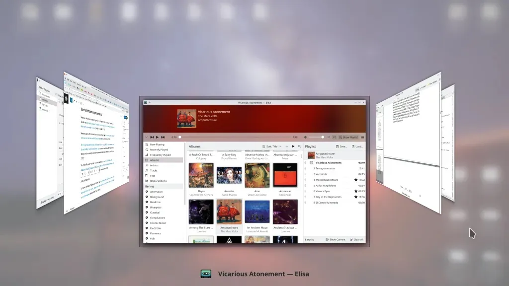 以及,任务切换效果 “ 覆盖 ” 和“ 翻转 ” 使用了 Plasma 对话框作为背景。