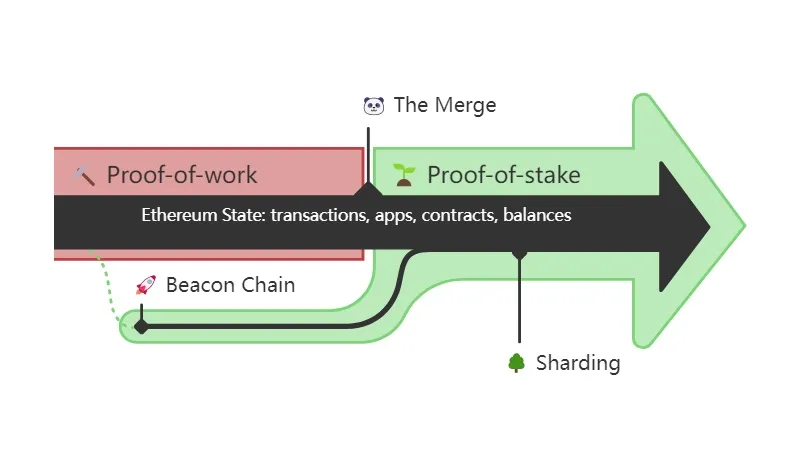 2022 年 9 月 15 日,以太坊准备了 8 年之久的从 PoW 切换到 PoS 顺利完成。此次合并只是对以太坊进行一系列升级的第一步,而接下来还将实施另外四个开发阶段。最终目的是让以太坊的扩展性更好、速度更快、使用成本更低。据报告,此前以太坊网络每年消耗约 2300 万兆瓦时的能源,合并后,可将以太坊的二氧化碳排放总量减少 99.992%。Vitalik 称,这降低了全球电力消耗 0.2%。不过,显然相当多的以太坊矿工转移到了继续采用 PoW 的 ETC 网络上了。