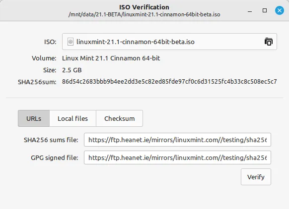 值得注意的是,对于 Linux Mint 和 Ubuntu 的 ISO 镜像,SHA256sum 和 GPG 文件的 URL 是自动填写的。