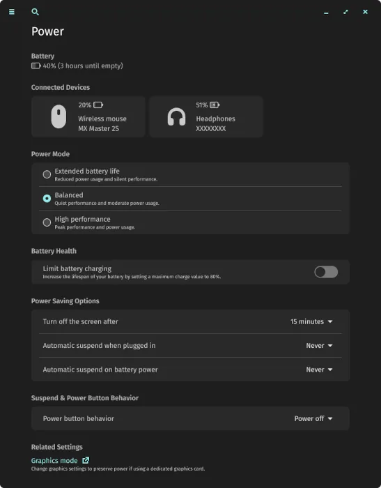 开发人员将图形模式和深浅色选项移至显示设置面板。在测试过程中,他们发现大多数用户到显示设置中去是希望找到这些设置。