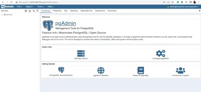 此时,PgAdmin4 已经成功安装。要从网络浏览器访问它,请前往以下地址: