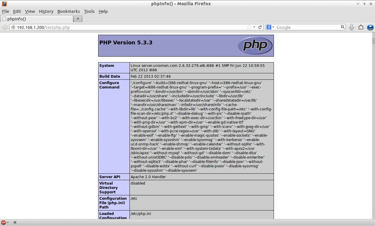 如果您需要安装所有的 PHP 模块,可以输入 yum install php* -y 来安装,安装完毕后重启 httpd 服务。重启服务后,您可以用浏览器打开 http://server-ip-address/testphp.php 来查看您刚才安装的模块情况。