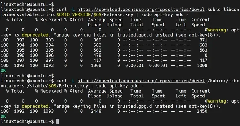 $ curl -L https://download.opensuse.org/repositories/devel:kubic:libcontainers:stable:cri-o:$CRIO_VERSION/$OS/Release.key | sudo apt-key add -