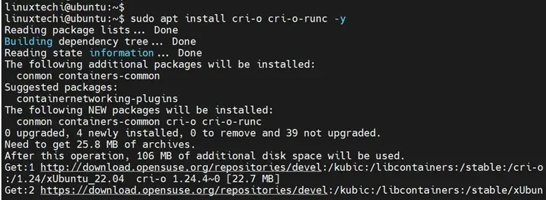 $ sudo apt install cri-o cri-o-runc -y