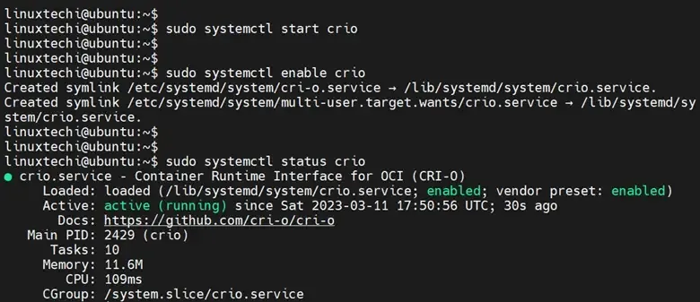 $ sudo systemctl start crio