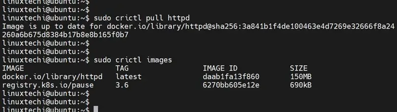 $ sudo crictl pull httpd