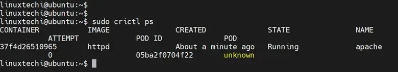 $ sudo crictl ps