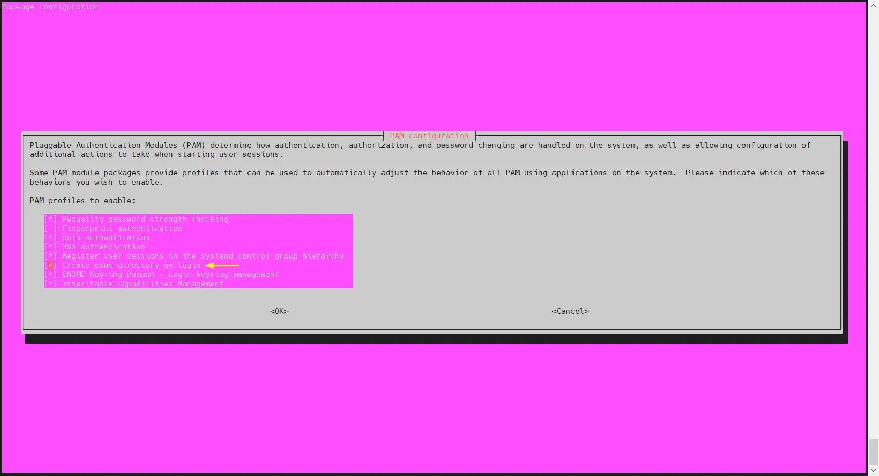 $ sudo pam-auth-update