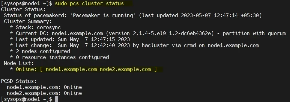$ sudo pcs status