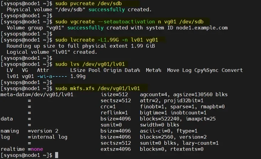 [sysops@node2 ~]$ sudo lvmdevices --adddev /dev/sdb