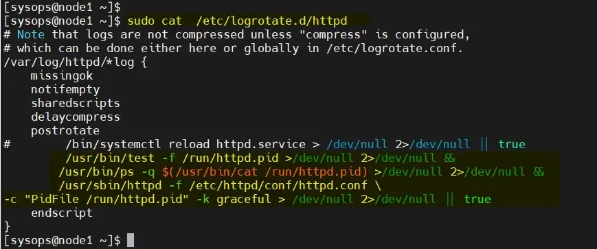 修改两个节点上的 /etc/logrotate.d/httpd:
