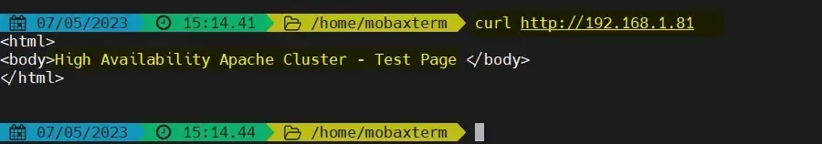 完美!以上输出确认我们能够访问我们高可用 Apache 集群的网页。
