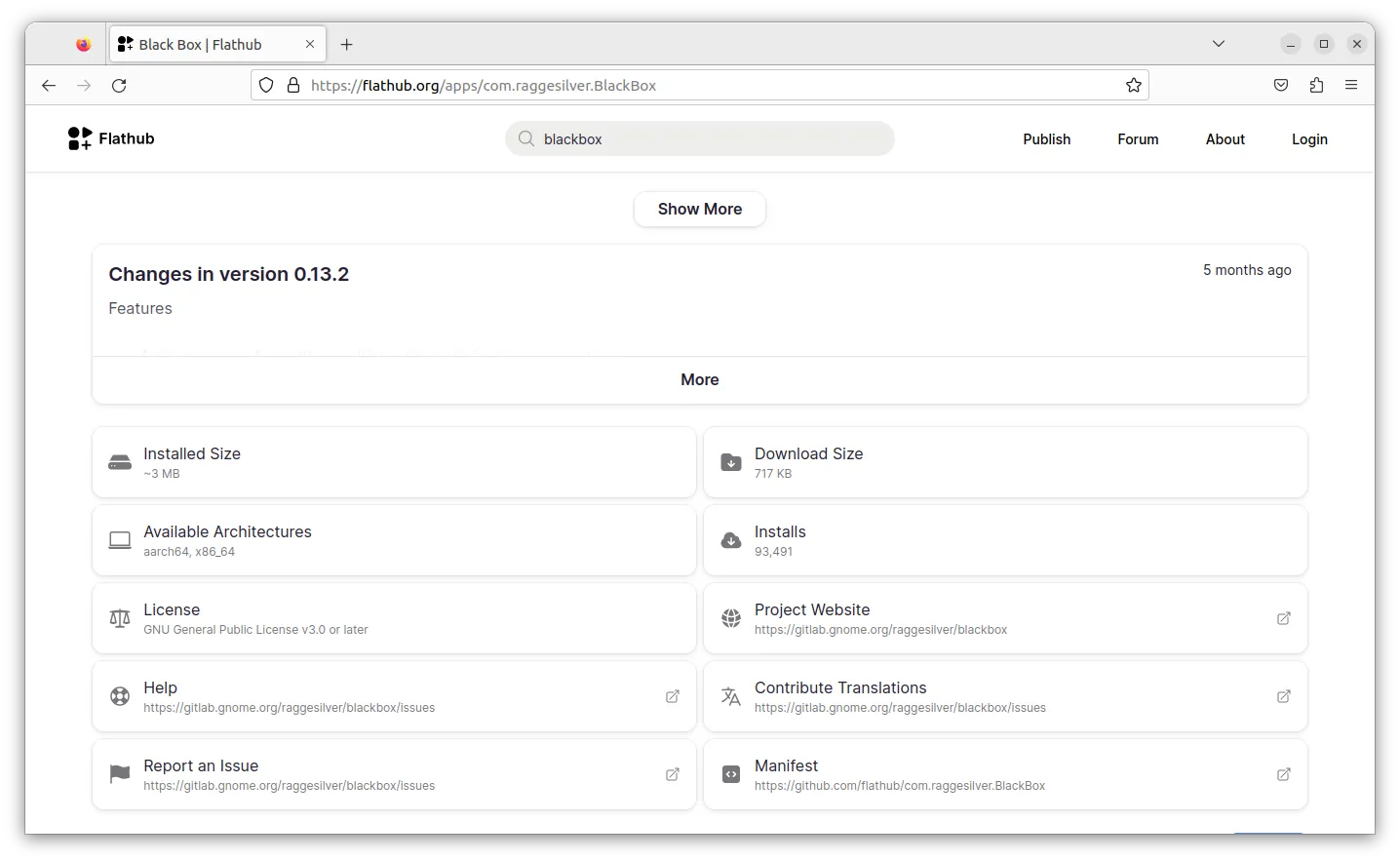 你可以在 Flathub 上浏览 Flatpak 应用,它提供了更多详细信息,例如经过验证的发布商、下载总数等。