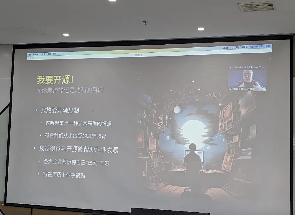 除了主题演讲之外,来自现场爱好者的闪电演讲的分享,也赢得了满堂喝彩,胡张治同学分享了他自己从一个 Linux 小白逐渐成长为 ArchLinuxCN 的维护者的经历,并介绍他自己对于不同发行版的看法;来自大连的孙捂饭同学,则介绍了自己作为一个传统的运维工程师,对于 LLUG 线下活动的感想和体验;李轲韡介绍自己作为一个从事 Linux 发行版工作的软件公司,是如何看待 Anolis OS 的,帮助大家从一个从业者的视角,理解 Anolis OS 的价值;李伟光(a.k.a.地瓜)现场安利了一波 NeoVim,让大家知道了 Vim 的一个有趣的发行版。