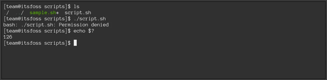 因此,不要把它与你之前看到的退出码为 2 的示例混淆。在那个示例中,运行的是 ls 命令,权限问题出自它试图执行的目录。而本例中权限问题来自脚本本身。