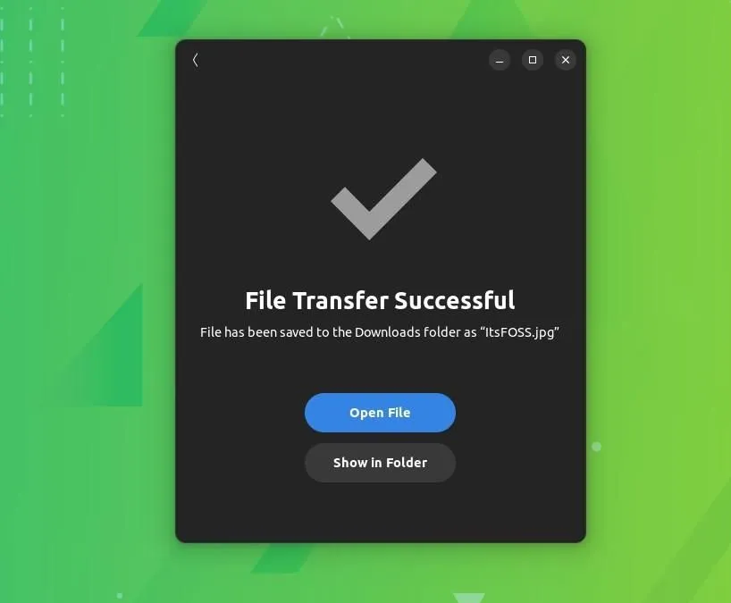 就是这样。文件传输完成后,接收方将显示以下页面:
