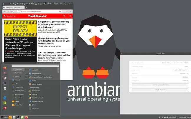 Armbian 项目就是对这个问题的答案。它为大量的单板计算机(SBC)——主要是 Arm 架构的,正如名字暗示的那样,虽然并非只有这些——编译了特殊的内核。在 23.08 版本(代号为 Colobus)的发布时,已经列出了支持的 59 个 Arm64 设备,以及 8 个 RISC-V 的板卡,还有一个 通用的 x86-64/UEFI 版本。我们在去年 3 月时点评了 Armbian 22.02,但我们重新回顾它,是因为这次发布包含了一个在 X13S 上的 版本,即使支持仍在 持续进行。