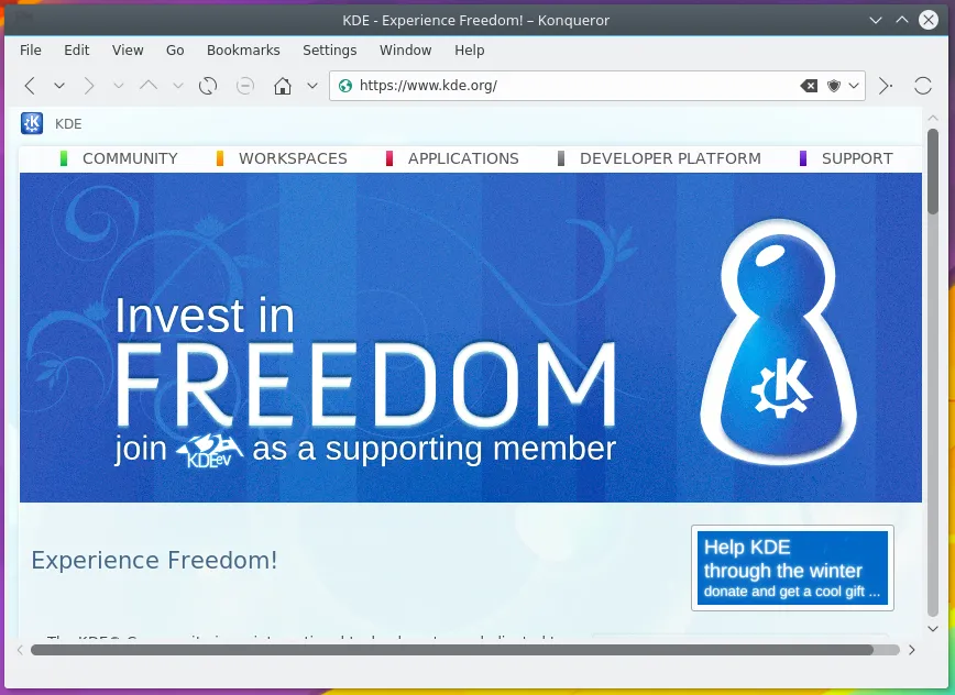 Konqueror 是 KDE 的网页浏览器,具有管理和预览文件的功能。