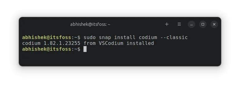 打开终端并使用以下命令安装 VSCodium Snap 包: