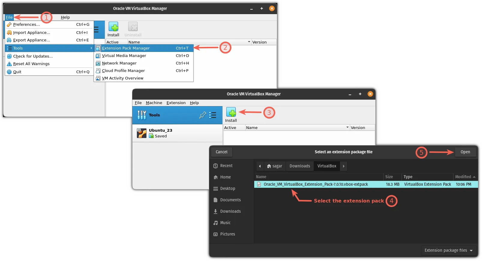 步骤 1:安装 VirtualBox 扩展包(在主机上)