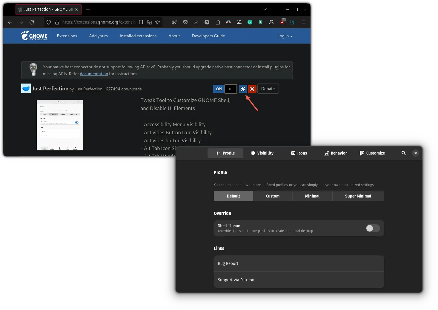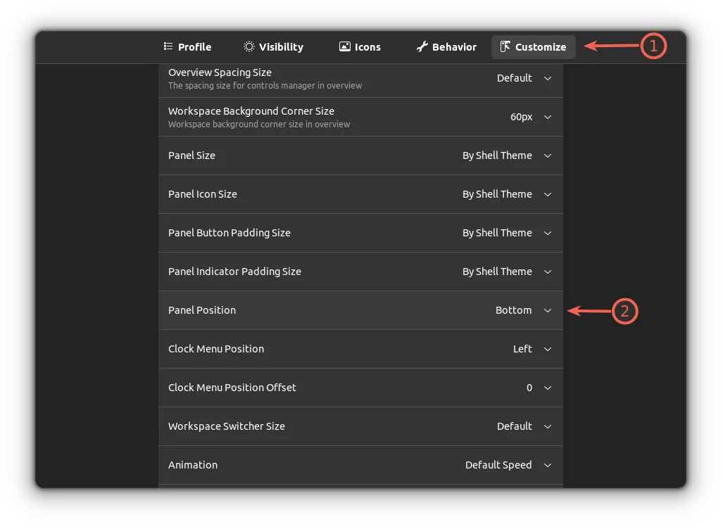 在此,我想向你推荐一款名叫 Just Perfection 的 GNOME 扩展,它帮助你一次性修改桌面的多种设置。