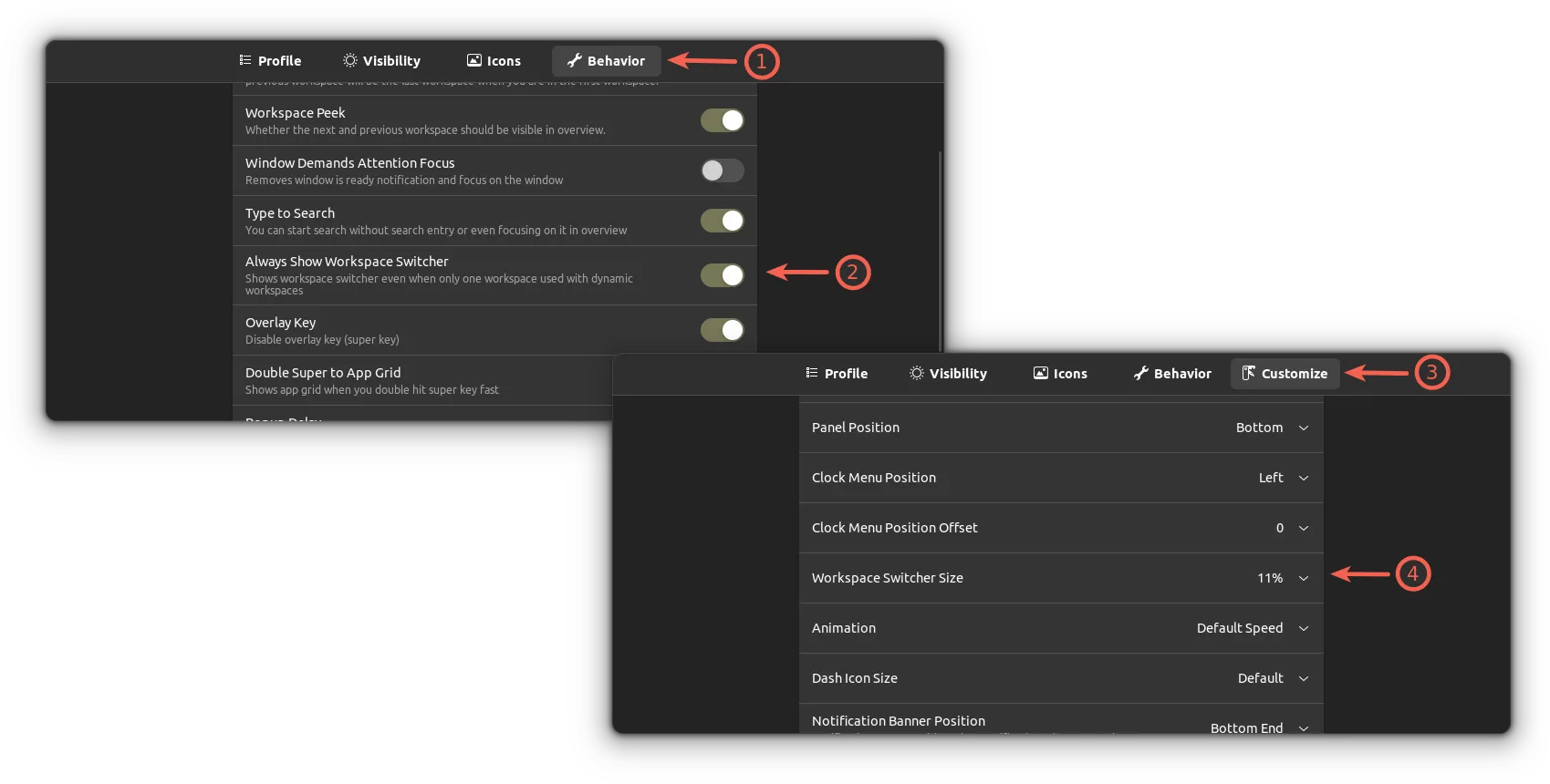 • 前往 “ 行为 Behavior ” 菜单并打开 “ 始终显示工作区切换器 Always Show Workspace Switcher