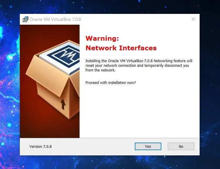 安装过程包括设置虚拟网络接口。因此,你的网络此时可能会被重置。确保安装时没有连接到任何重要的东西。