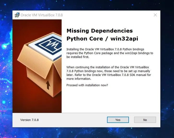 需要安装 Python 核心包才能使 Python 绑定正常工作。如果你不想使用 Python 脚本控制虚拟机,则不一定需要安装它。