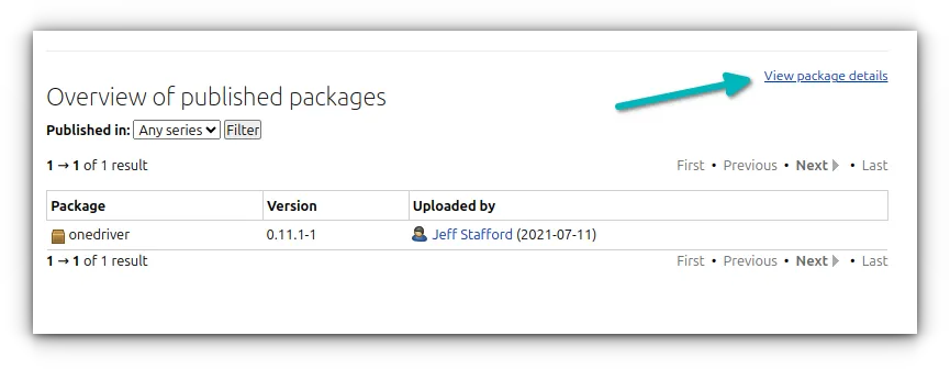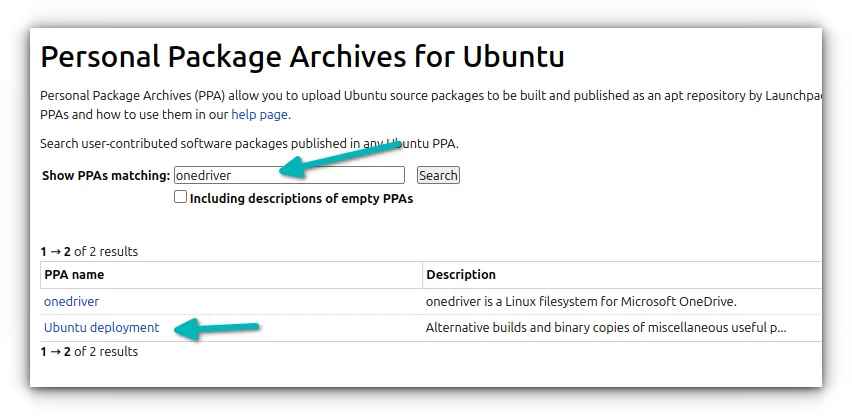 例如,如果我查找 onedriver 包,我可以看到它可能在另一个名为 Ubuntu deployment 的 PPA 中可用。