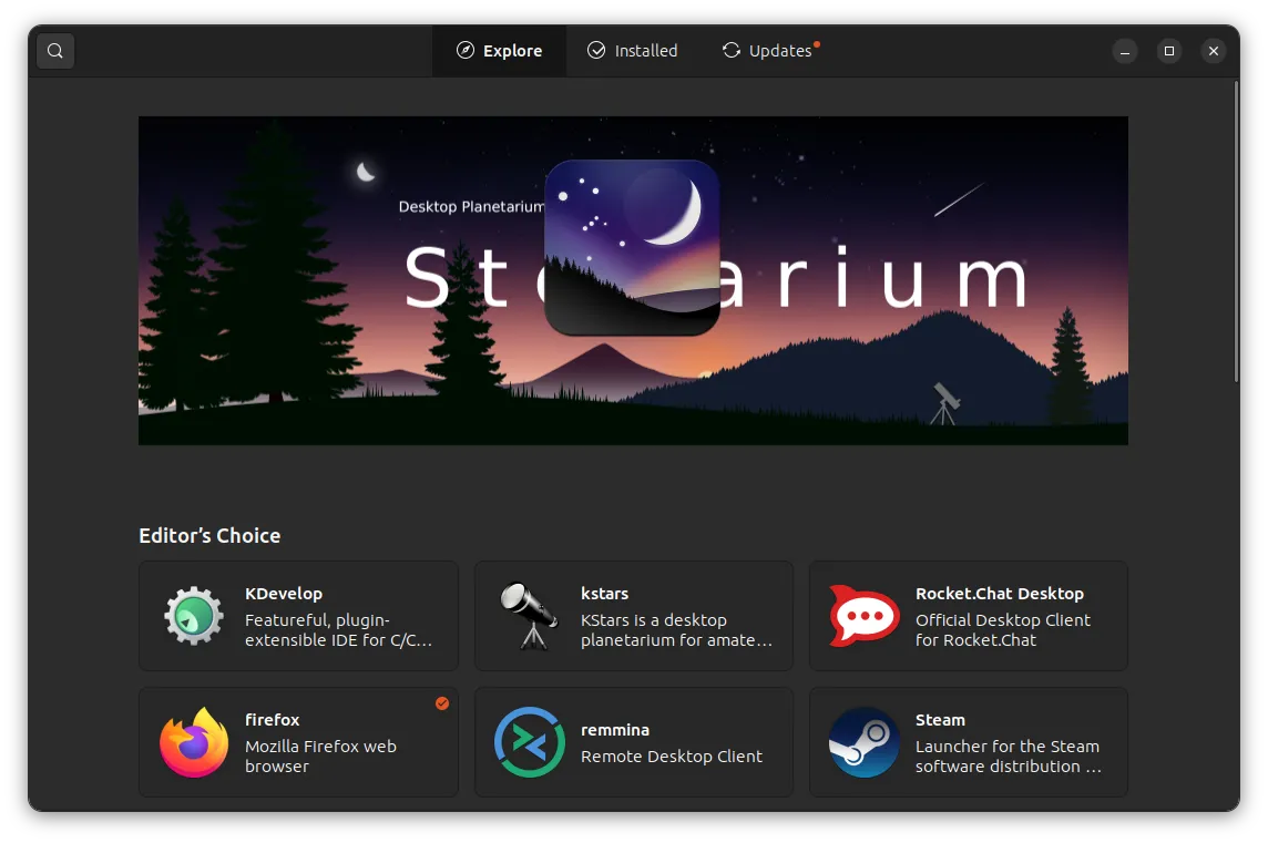 对于 Ubuntu,它使用 软件中心 或者 Ubuntu 应用中心 (从 Ubuntu 23.10 开始的新版本),默认集成了 Snap。因此,如果你更倾向于使用 Snap 而不是 Flatpak,Ubuntu 就可以提供以无缝的安装体验。
