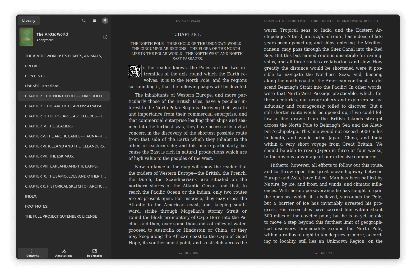 如你所见,Foliate 的主要变化在于其用户界面。它现在采用了全新的布局,把图书库和电子书阅读器都整合到一个窗口中。