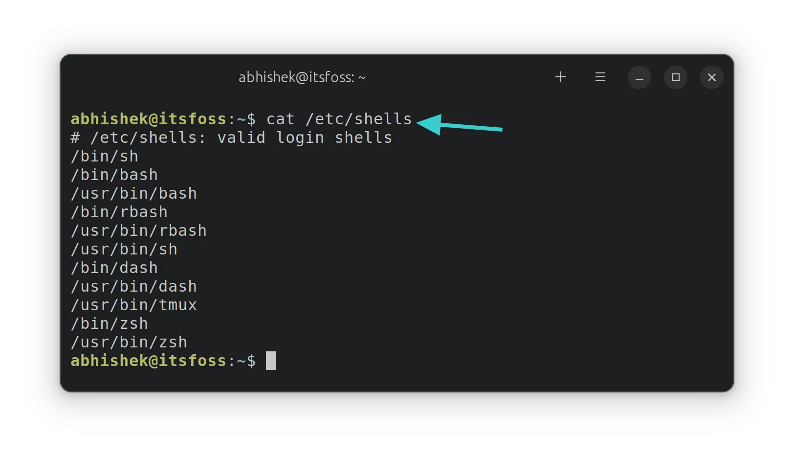 /etc/shells 文件的内容显示了所有可用 Shell 的二进制文件位置。你需要将它与 chsh 命令一起使用。