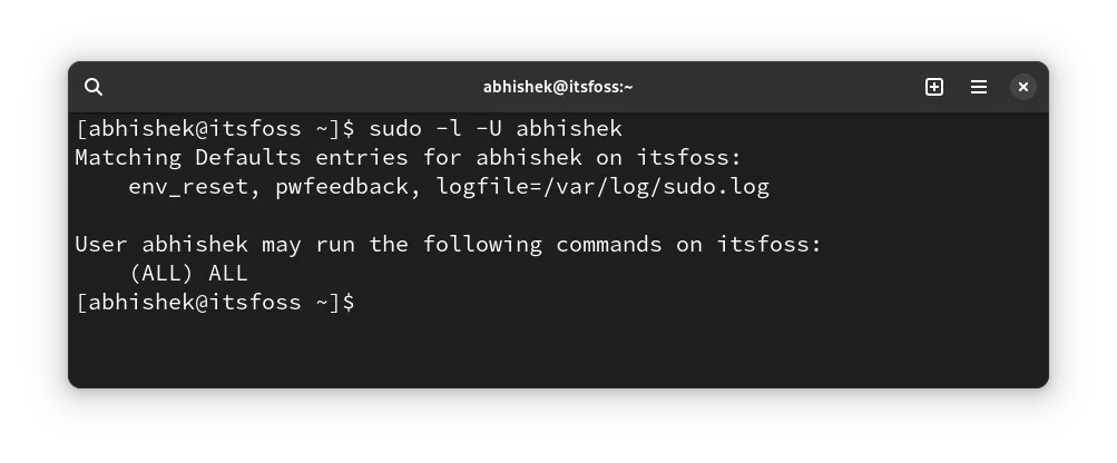 这将显示出用户具有执行部分命令或所有命令的 sudo 权限。
