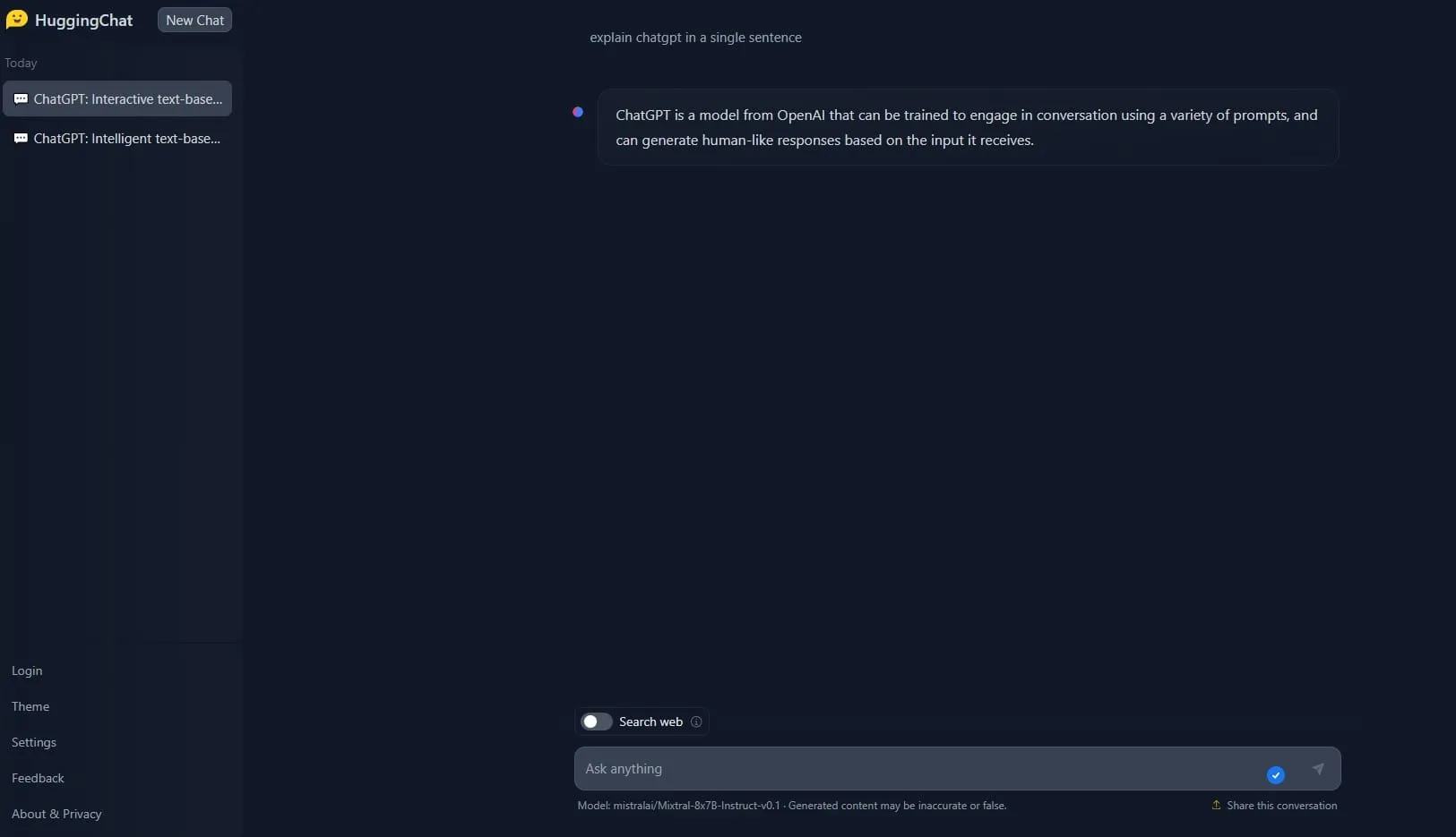 HuggingChat 正是 Huggingface 打造的开源的 ChatGPT 替代品,使用了社区中最优秀的 AI 模型来实现聊天机器人的功能。