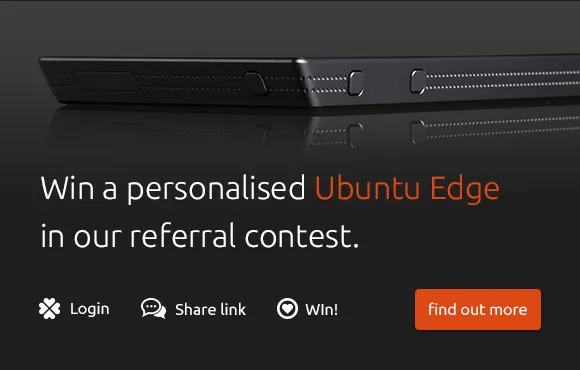 四天前,Ubuntu Edge 筹资项目开展了一个有奖活动推广活动,目前这个活动还有三天时间结束。不管您是捐赠了 20 美元还是 2000 美元,您都可以参加这个活动,参加这个活动将有机会赢得一个给 Ubuntu Edge 手机刻字的服务足够的购买 Ubuntu Edge 的资金。参加活动情况如下: