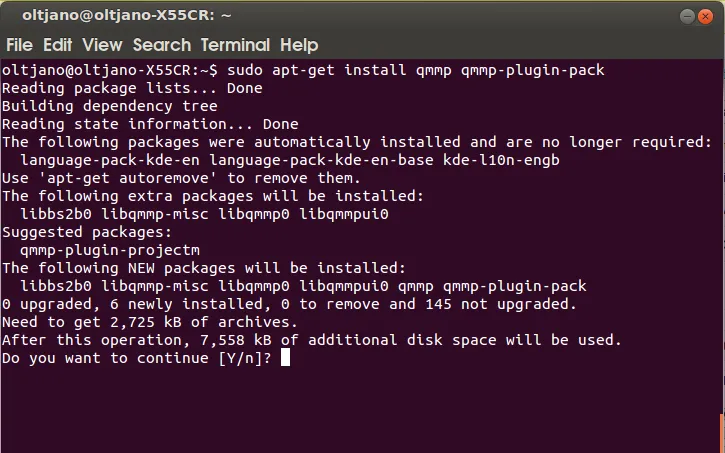 现在开始安装Qmmp 0.7.2;打开新的终端,输入下列命令: