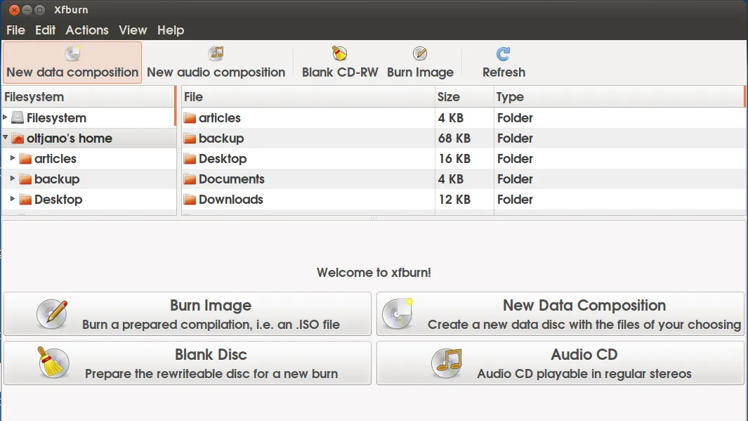 Xfburn是另一个能够刻录CD/DVD的工具,它可以很好的运行在Xfce桌面环境中。它非常快速,轻量级,能够刻录视频CD和DVD。如果你不想为了K3b而安装KDE桌面环境的话,它会是最好的选择。