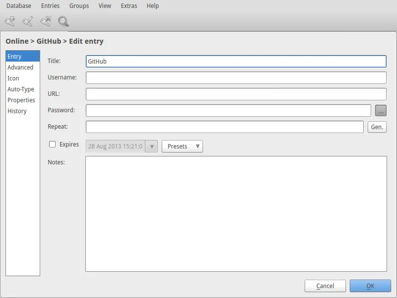 Ubuntu中KeePassX的主界面