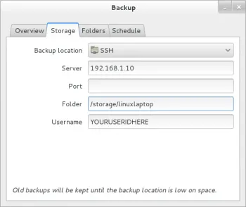 从linux客户端启动备份程序,选择“SSH”作为备份位置,输入RPi的IP地址和你创建的存储位置。首次备份会很慢,但是以后的运行将只发送增量变化,速度更快。
