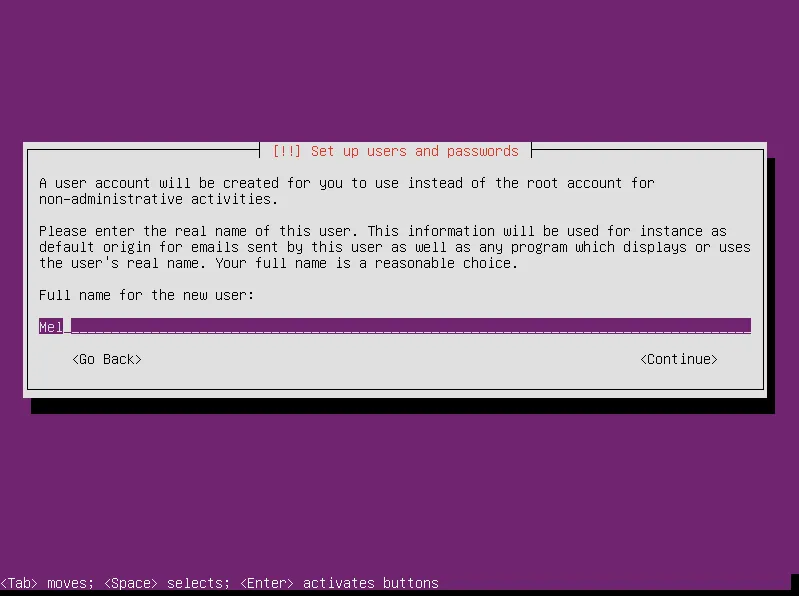 输入用户名以创建一个非特权用户(译注:操作服务器要习惯使用普通用户操作,仅仅在必要使用使用sudo来使用root权限。):
