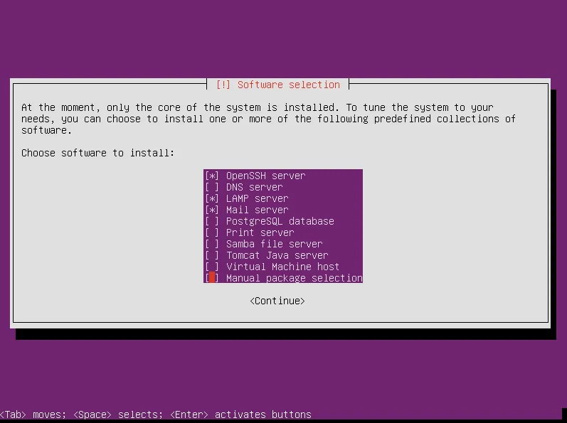 选择要安装的软件(译注:仅仅选择你的服务器所必须的,暂时不用的,最好不要选择。将来需要增加或许修改时,你还有足够的时间去改变。):