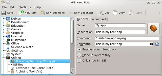 在这个例子中,gnome-desktop-item-edit会在目录~/.local/share/applications中自动创建一个桌面启动器文件。若是想自定义快捷方式图标或者其它信息,你可以手动编辑.desktop文件。