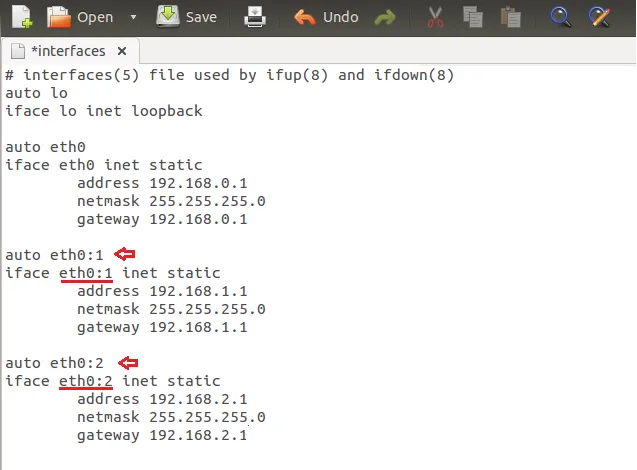对于你创建的每一个网卡,也要确保网络都是不同的子网,这是网络常识(译注:事实上并非如此,虚拟网卡完全可以是相同子网的IP地址,只要你需要)