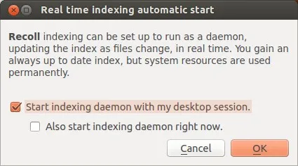 激活这一选项,recoll的守护程序都会随系统启动。要注意的是这一选项只有在默认索引设置的情况下才可用。